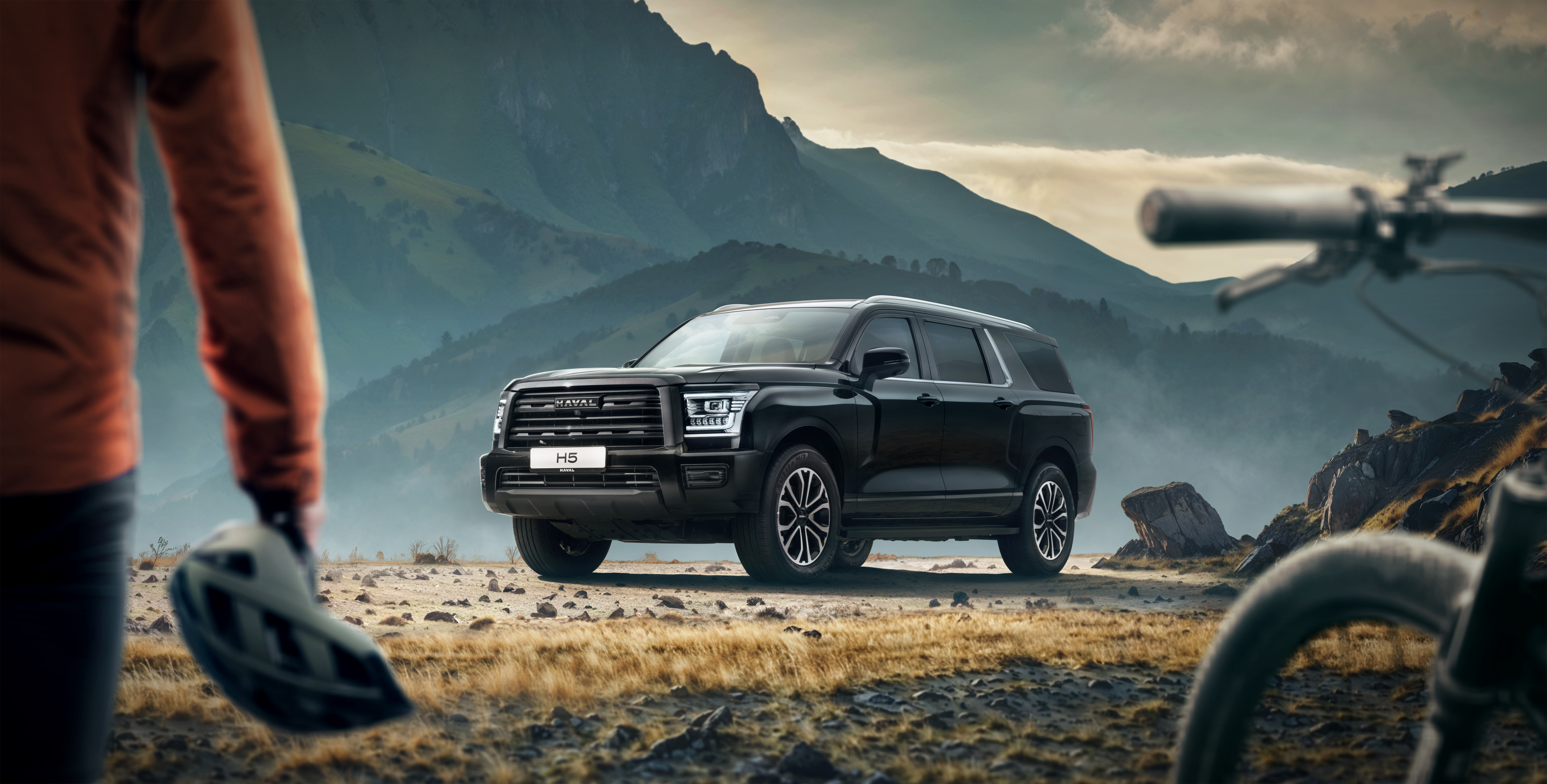 HAVAL H5 — рамный внедорожник, сочетающий мощь, простор и современный дизайн. Габариты модели обеспечивают уверенное поведение на дороге и вне ее, а также комфортное размещение водителя, пассажиров и багажа для длительных автомобильных путешествий.